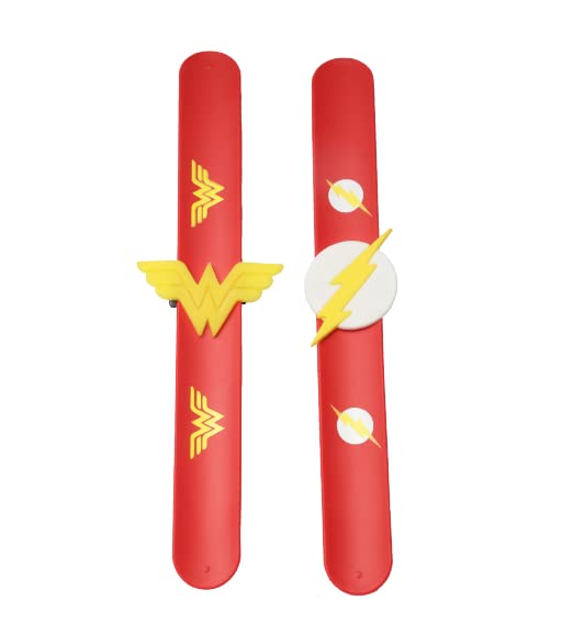 El Regalo 2 PCs Superhero Snap Silicon Slap Wristband for Girls & Boys- Kids Party Favors, Silicon Wrist Slap Bands with Removable Super Hero Charms for Fun Kids Party Favors