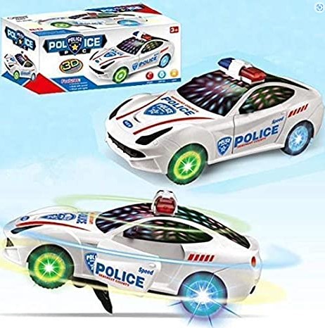 • A bump and go feature means that obstacles cannot stop this police car toy. It will automatically change direction when it drives into objects, keeping it in constant motion. It is just perfect for keeping little boys and girls happy and elated. It measures approximately 8” bumper to bumper. FUN 3D LIGHTS AND REALISTIC SOUNDS: In addition to the fun show, it has lights in the wheels that give a beautiful and spectacular show as it moves around. It also produces real police car sounds that kids