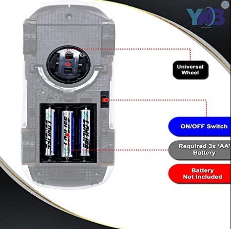• Please remove the cover at the bottom before using the product otherwise it will not move. Requires 3 AAA batteries (not included)