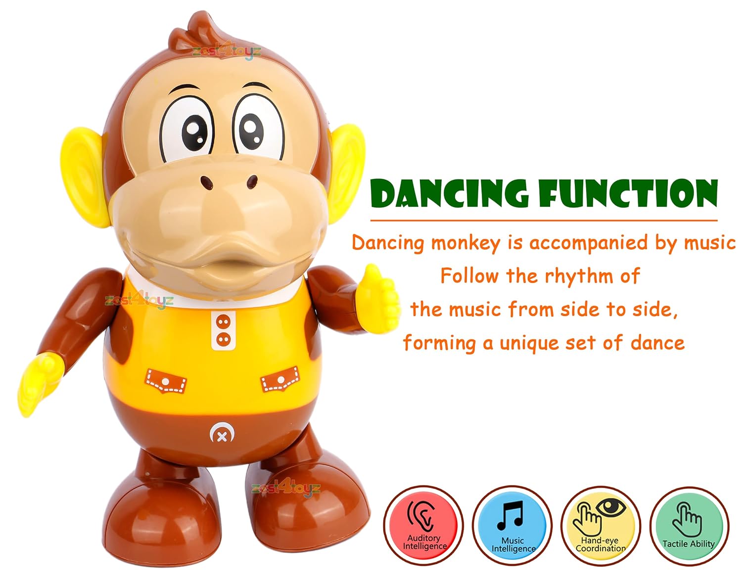 Monkey with light and Music swaying dancing looks naive n very cute brings smile on littles one with real dance steps waves hand and swing legs .